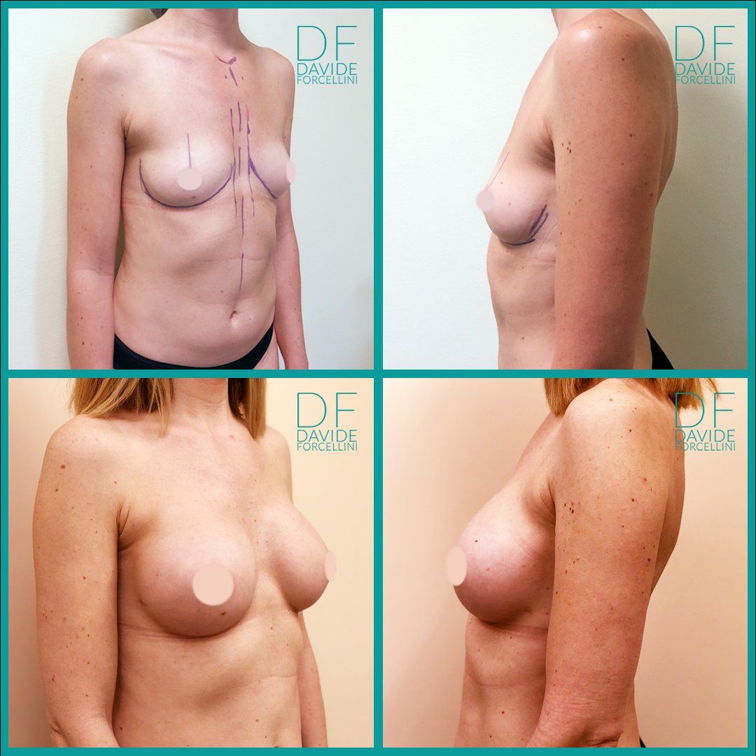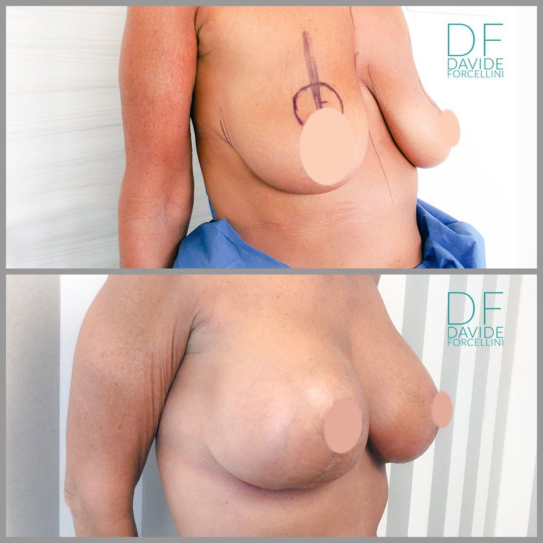 con protesi 300 cc a proiezione bassa e mastopessi a T invertita