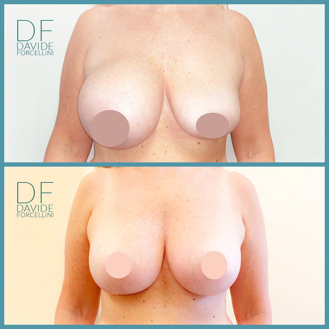 In paziente con voluminoso sieroma e contrattura capsulare. Durante l'intervento chirurgico si è proceduto a sostituzione protesi bilaterlamente e capsulectomia sinistra mediante approcio dal solco inframammario.